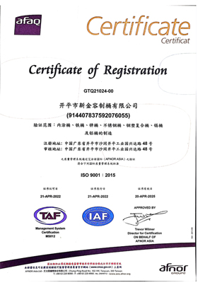 In addition, the company actively carried out total quality management, passed the ISO9001: 2015 international quality system certification, and strictly followed the national standards for production and inspection. Strictly inspect the raw and auxiliary materials, semi-finished products and finished products, and constantly improve and perfect the quality assurance system to strictly control the quality, so that the products can reach the international advanced technical level. It is one of the large-scale and high-quality steel barrel manufacturers in the same industry.